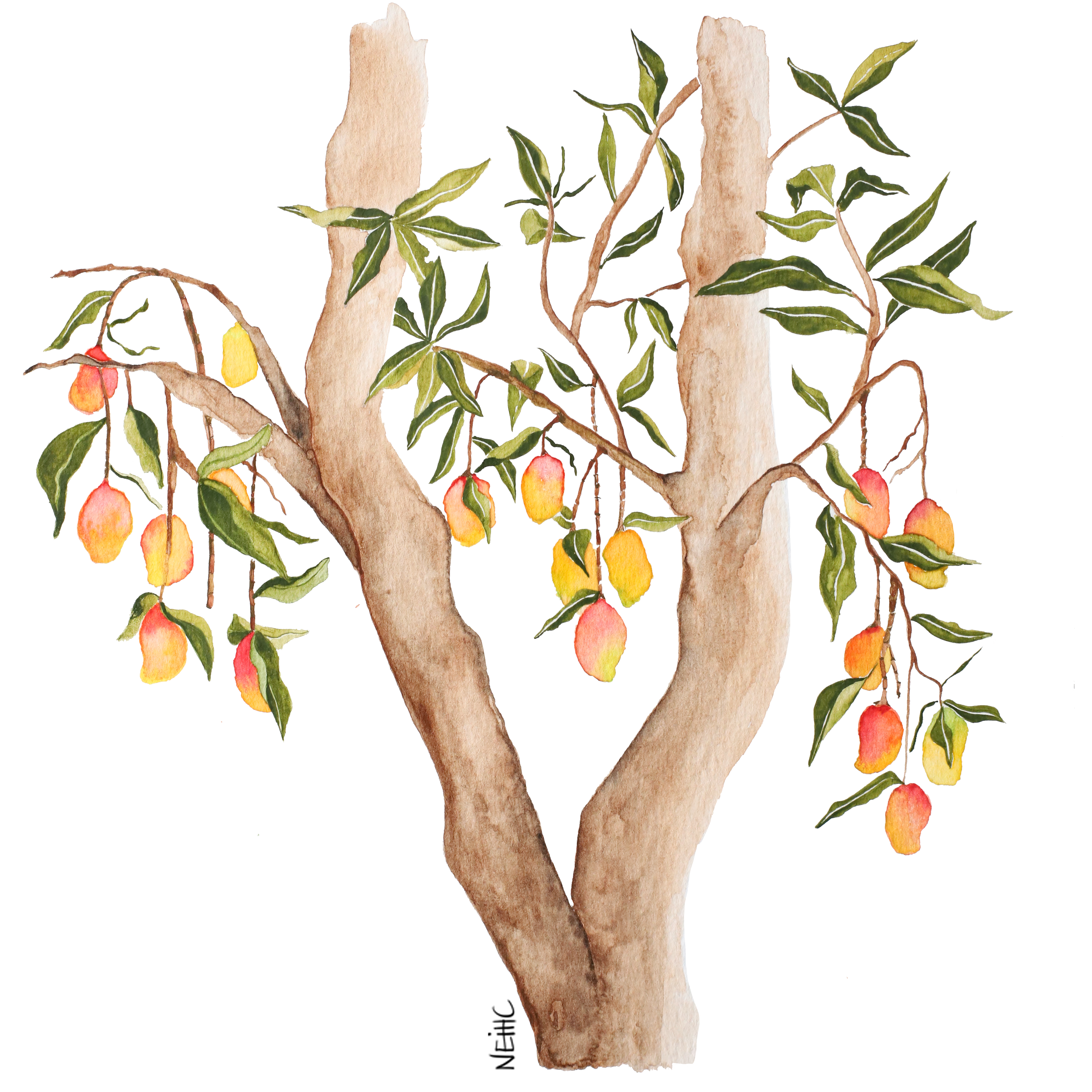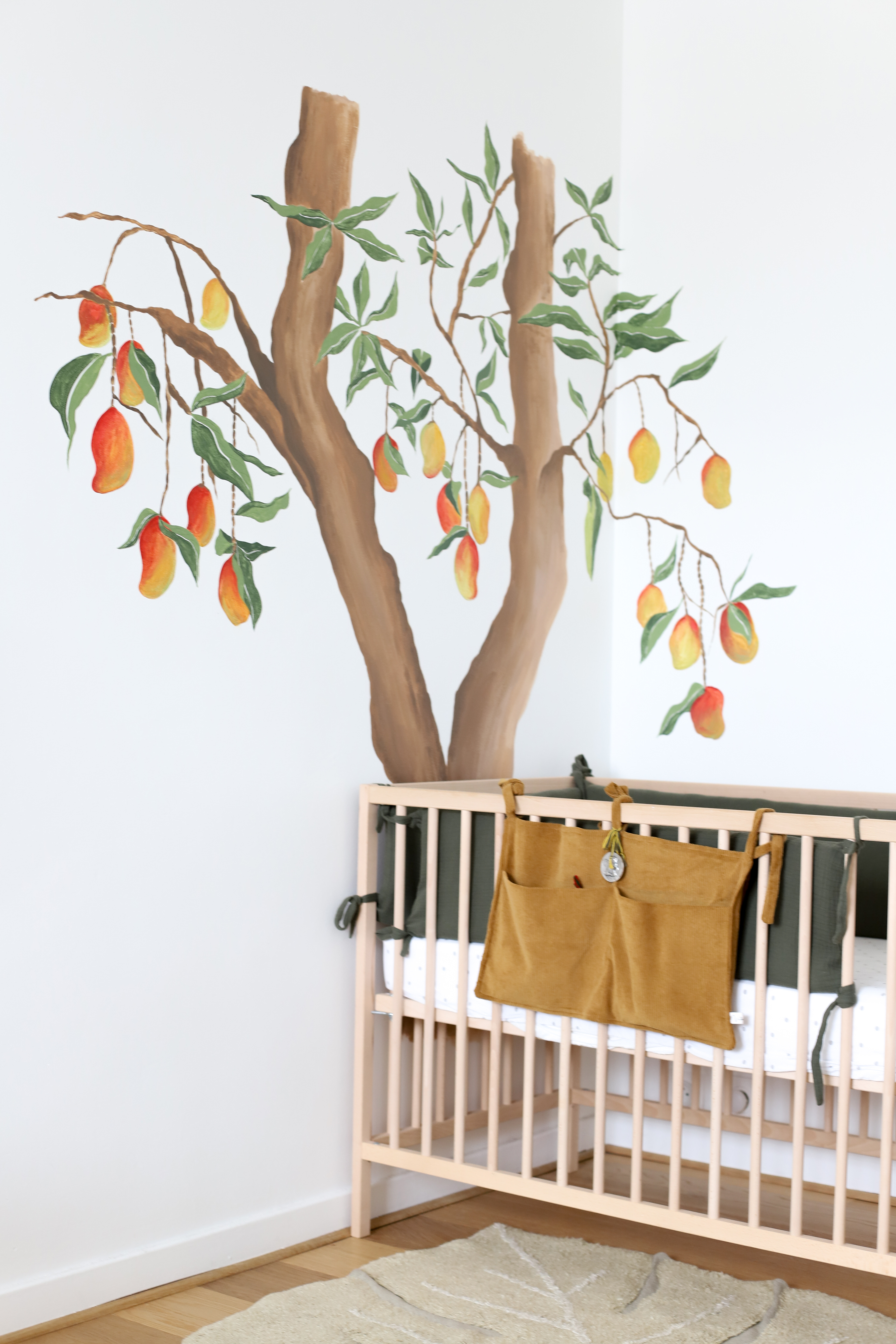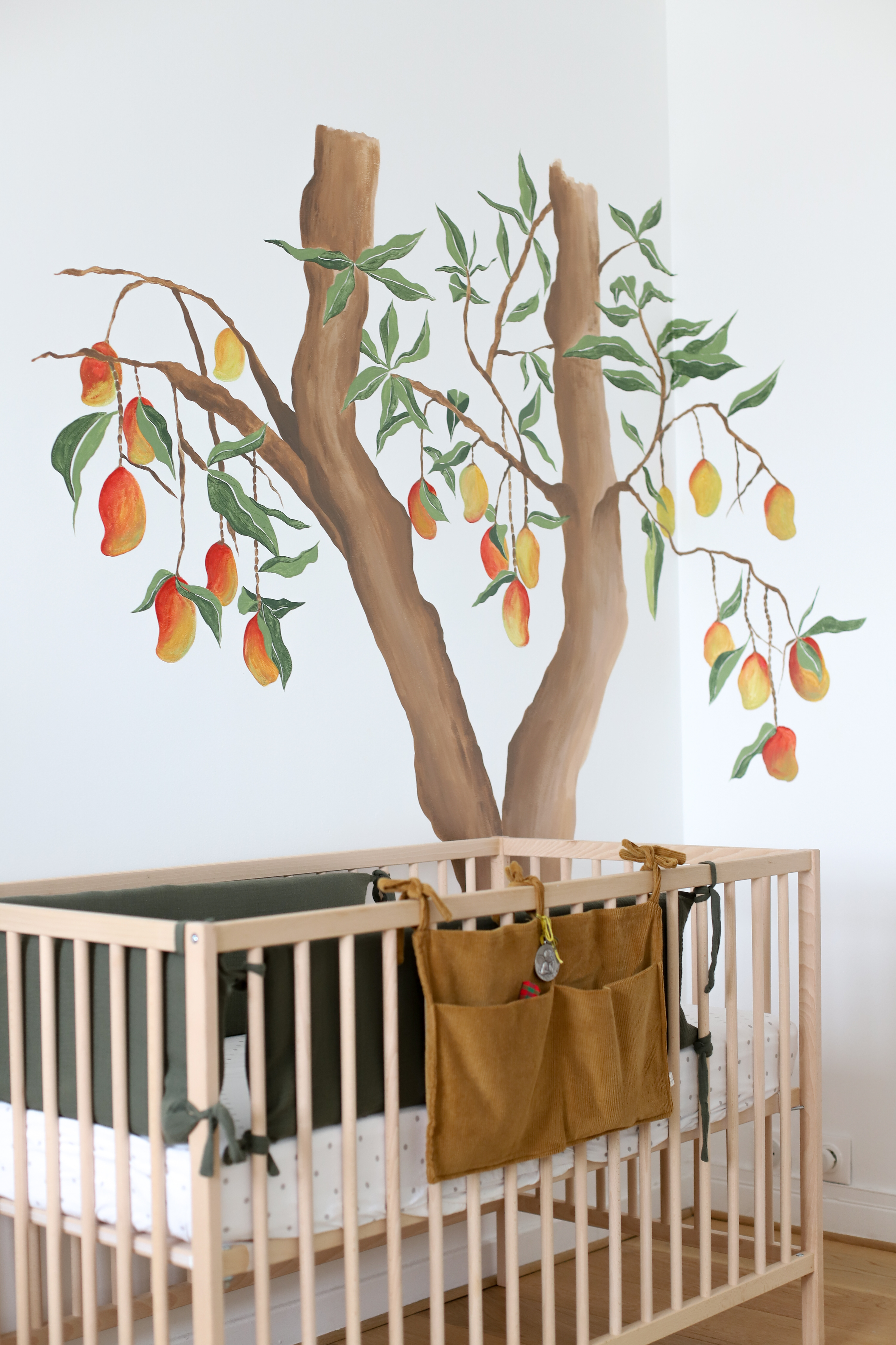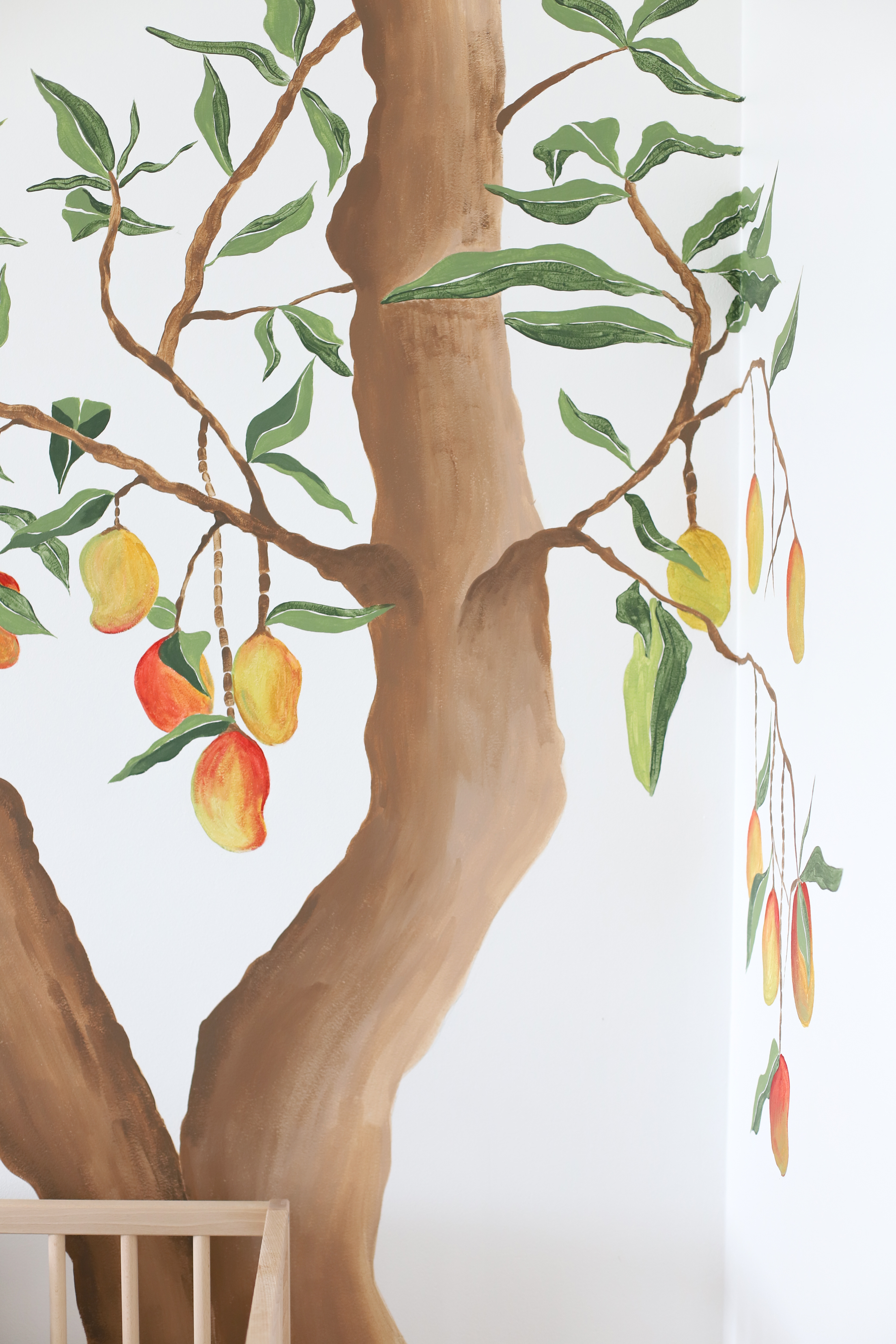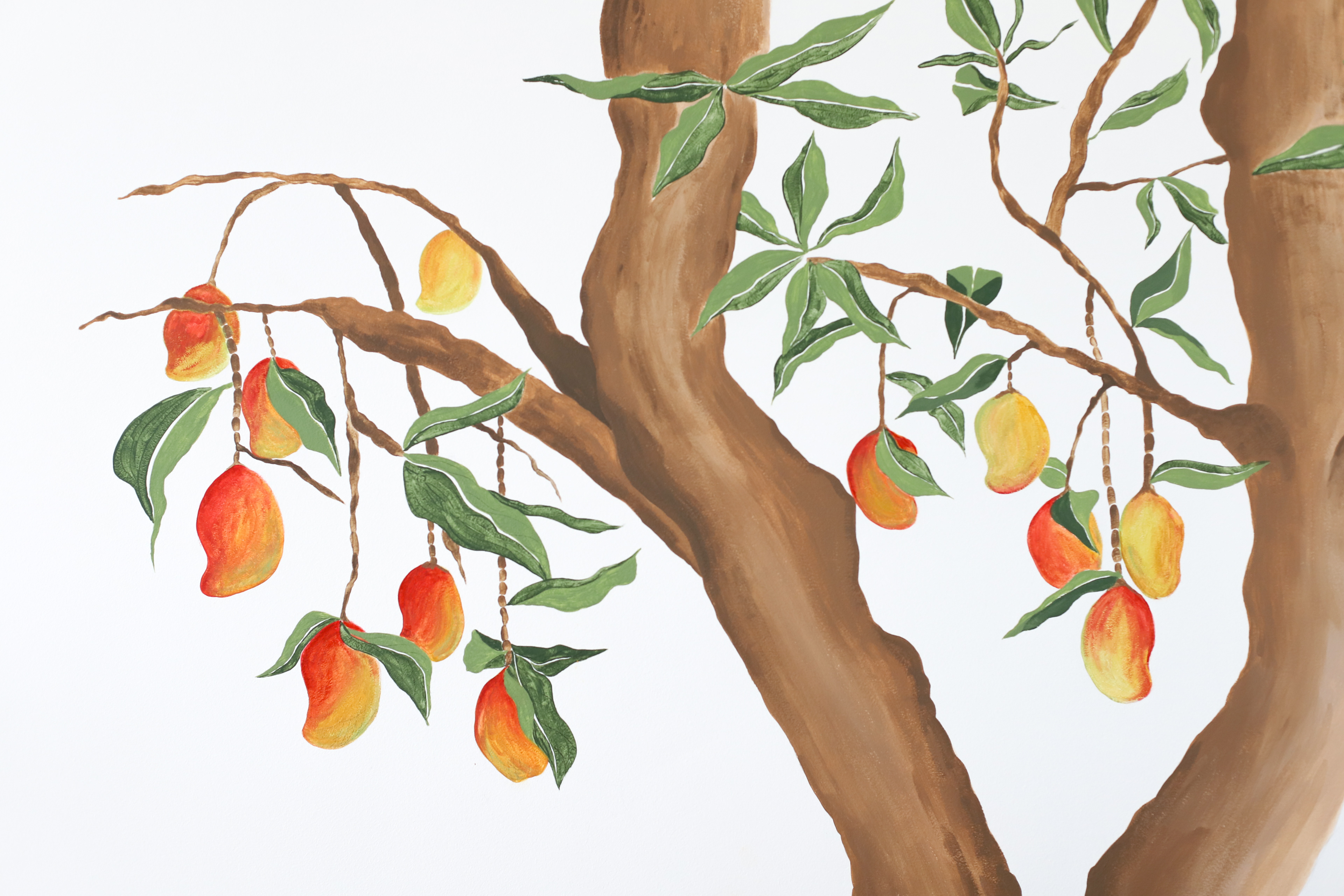 Dessin d'un manguier réalisé à l'aquarelle pour le reproduire dans la chambre d'un petit garçon à plus grande échelle